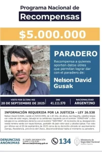 El Programa Nacional de Recompensas, dependiente del Ministerio de Seguridad de la Nación, ofreció una recompensa de $5.000.000 (cinco millones...