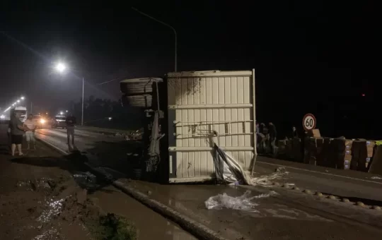 Un camión de transporte que llevaba un cargamento de postres lácteos volcó en la ruta nacional 16 cerca de Quitilipi...