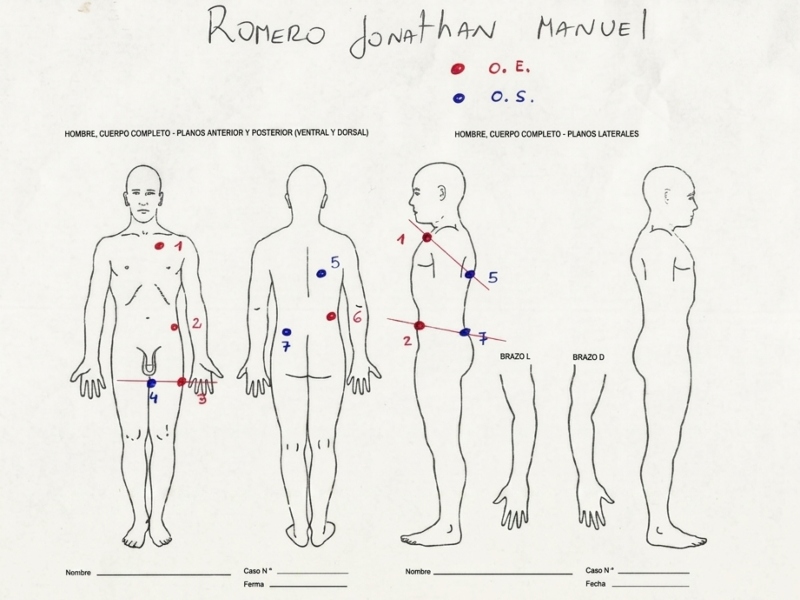 El análisis pericial incluye un esquema corporal que marca los puntos de impacto. Allí se identifican los orificios de entrada y salida distribuidos en el tórax, abdomen, zona lumbar y muslo izquierdo. Además del disparo letal, el informe describe un impacto en el abdomen que atravesó el cuerpo sin comprometer órganos vitales; un disparo en el muslo izquierdo, también con entrada y salida; y un proyectil que ingresó por la zona lumbar derecha y quedó alojado en los músculos paravertebrales. Estos elementos refuerzan la hipótesis de una agresión violenta y con múltiples detonaciones, en línea con el hallazgo previo de varias vainas servidas en la escena. «Cuatro disparos no son casualidad. Quien disparó quería matarlo, no solo herirlo», afirmó la fuente.