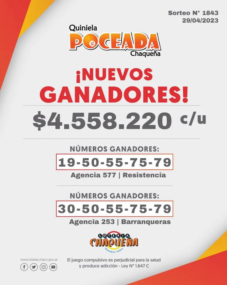 Este sábado a última hora se llevó a cabo el sorteo de la Quiniela Poceada Chaqueña y dos personas fueron las nuevas ganadoras de la Poceada chaqueña, ambas se llevaron un pozo superar a 4 millones de pesos.