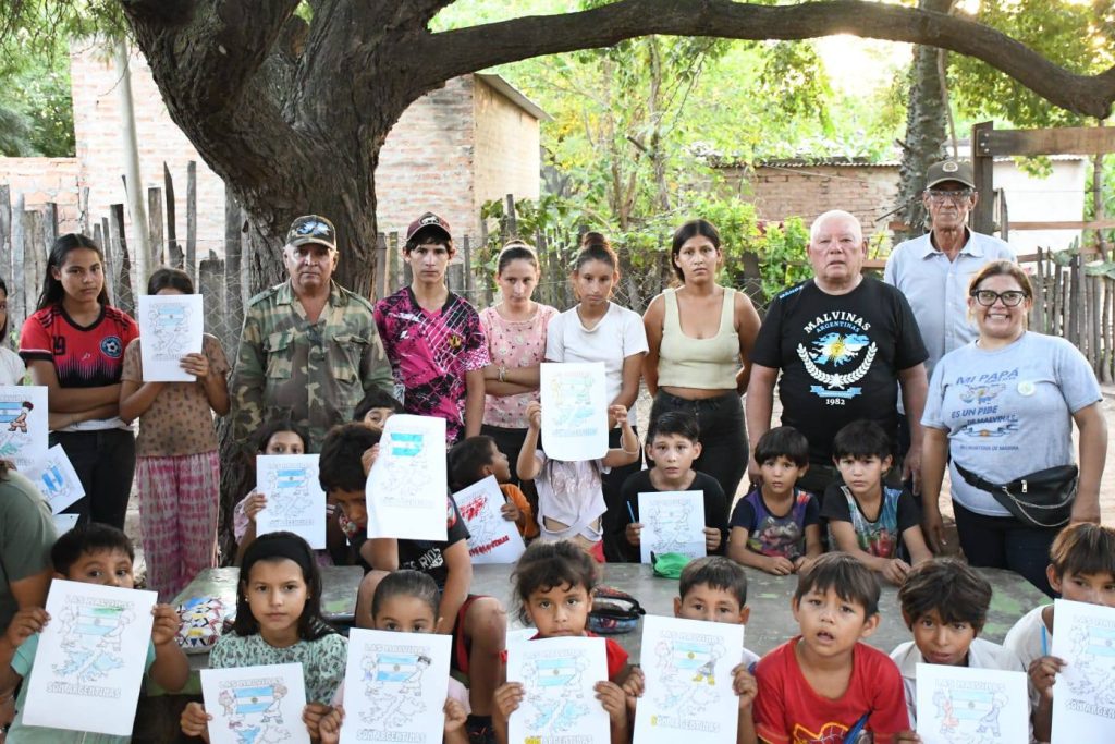 Los más chicos fueron el centro de atención de los veteranos. Lejos de la solemnidad rígida, el encuentro permitió que los niños participaran activamente a través de dibujos y expresiones artísticas.