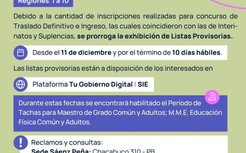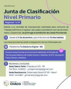 El Ministerio de Educación del Chaco, a través de la Junta de Clasificación de Nivel Superior, informa que del 1...
