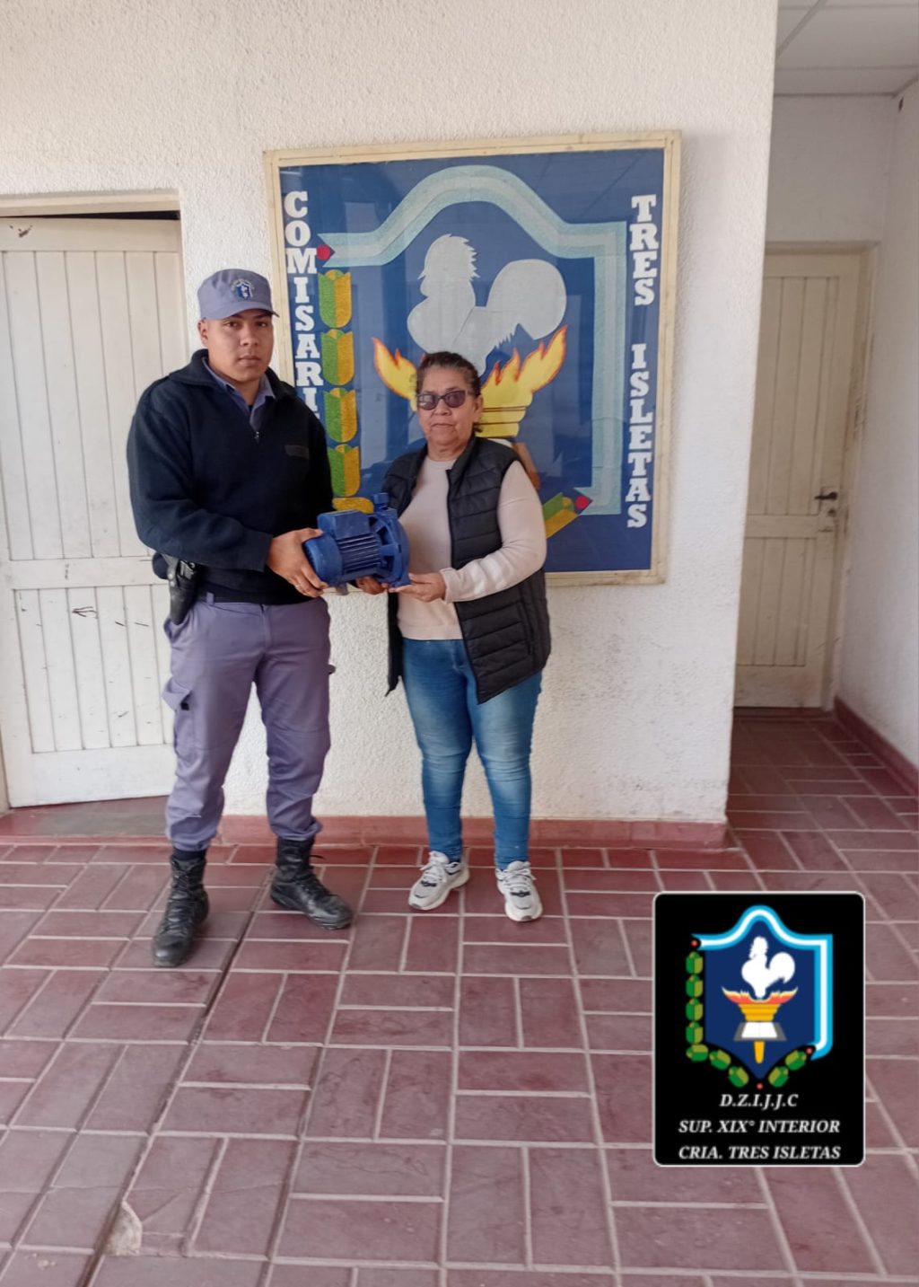 TRES ISLETAS, CHACO — En una rápida investigación, la Policía de Tres Isletas logró esclarecer el hurto de una bomba centrífuga en el Centro Comunitario Jesús María , un suceso que había sido denunciado el 22 de septiembre por la portera y encargada del lugar, la Sra. Alberto Melgar.