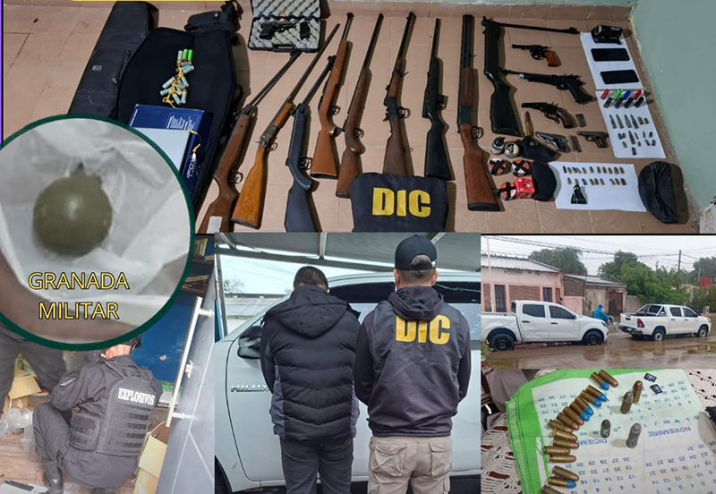 En el marco de una causa por «Presunta Intimidación pública e Incitación a la violencia colectiva», personal del Departamento de Investigaciones Complejas Interior, a través de la División de Investigaciones Complejas de Villa Ángela, llevó a cabo un allanamiento que arrojó resultado positivo. «El hallazgo es impresionante. Tenían una granada activa y un arsenal completo. No era para una broma, era para algo mucho más grave», expresó a este medio un vocero policial.