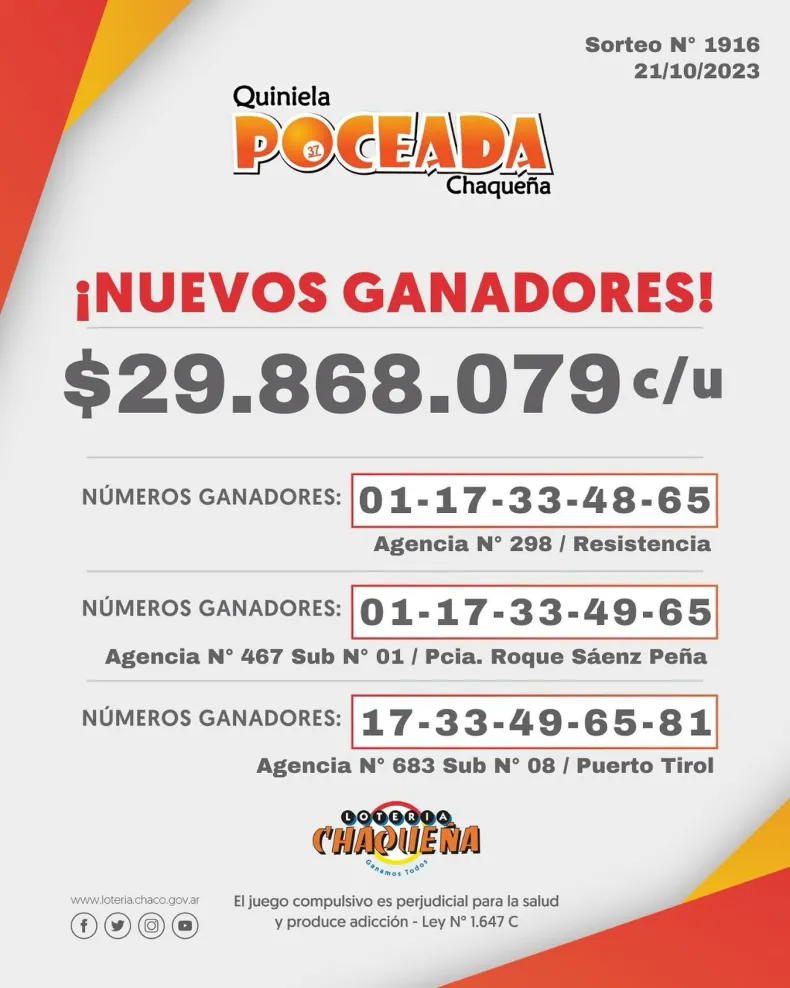 Tres Nuevos Millonarios en Resistencia, Sáenz Peña y Puerto Tirol con Más de 29 Millones de La Poceada