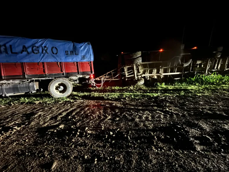 - Resultado: Vuelco parcial del acoplado. No hubo víctimas personales, solo daños materiales en la unidad y la pérdida parcial de la carga.
